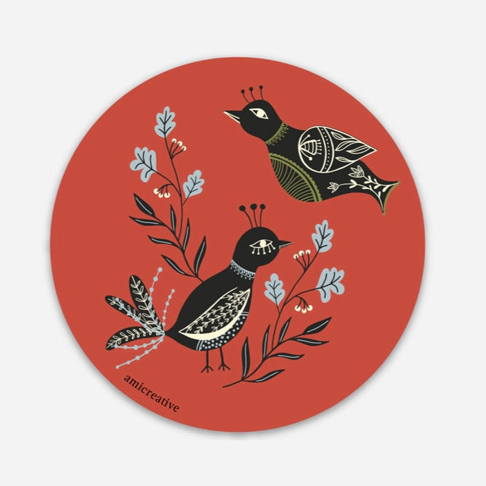 Birds Winter Folk Vinyl Sticker