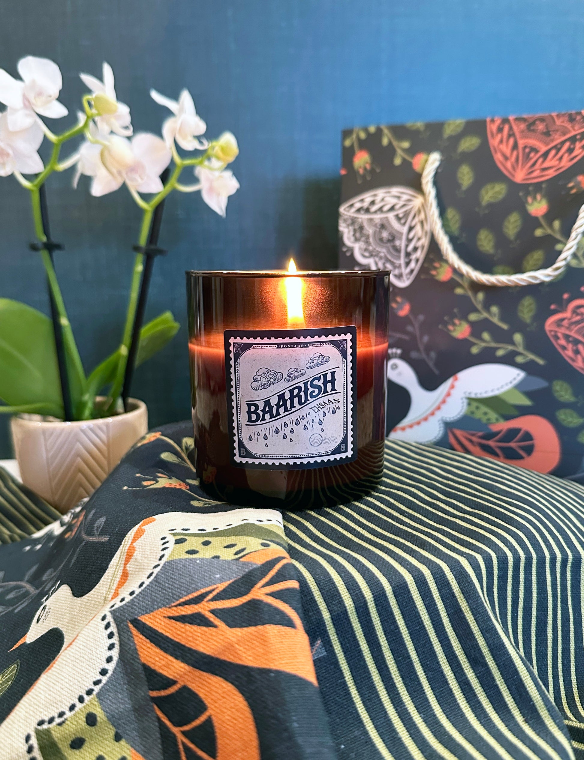 Baarish (Rain) candle captures the scent of fresh rain and soft greenery