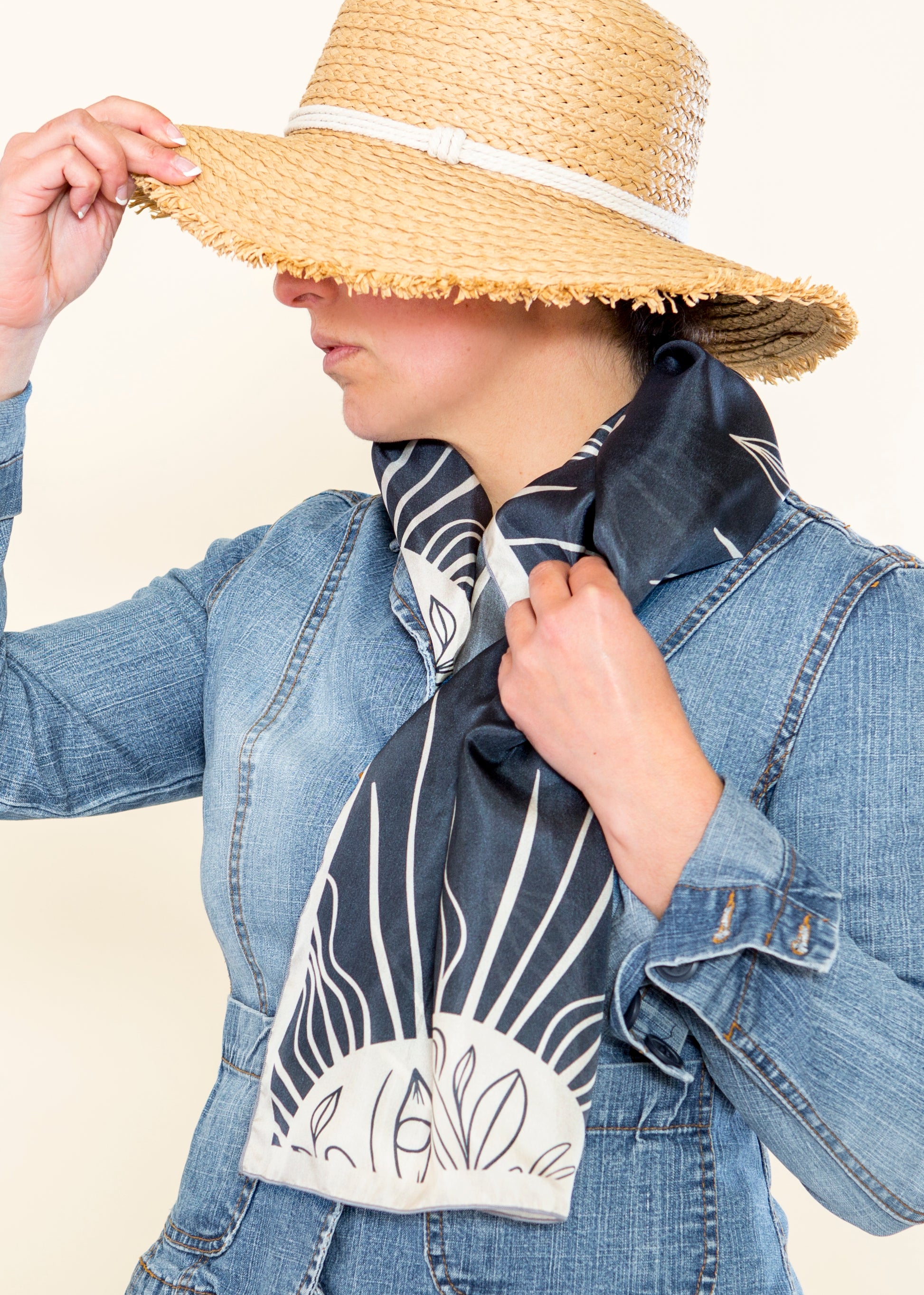 Celestial Sun Silk Scarf – Hand-Drawn Luxury Gift for Astrology Lovers