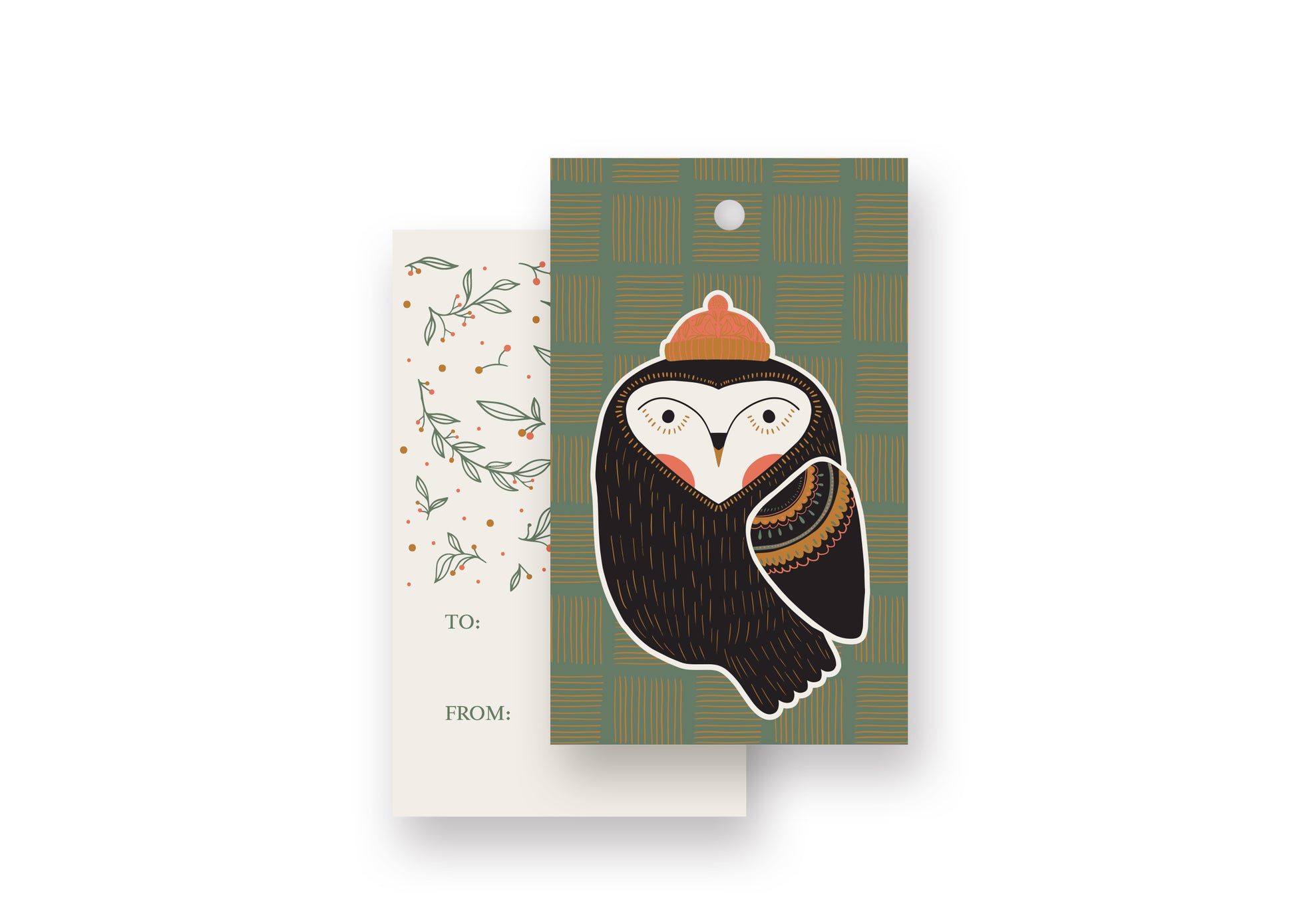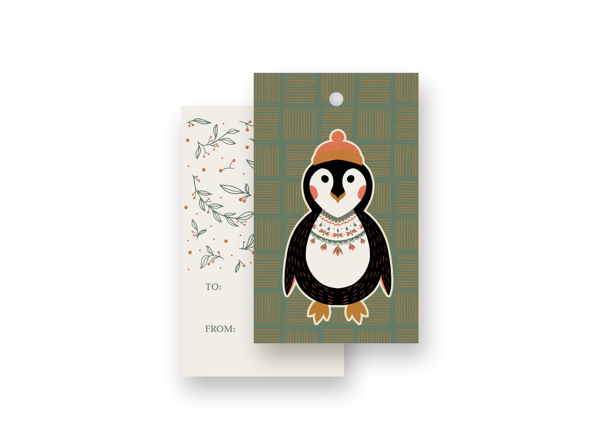 These cute tags feature my original illustration of a polar bear, owl or penguin ready for the holidays.