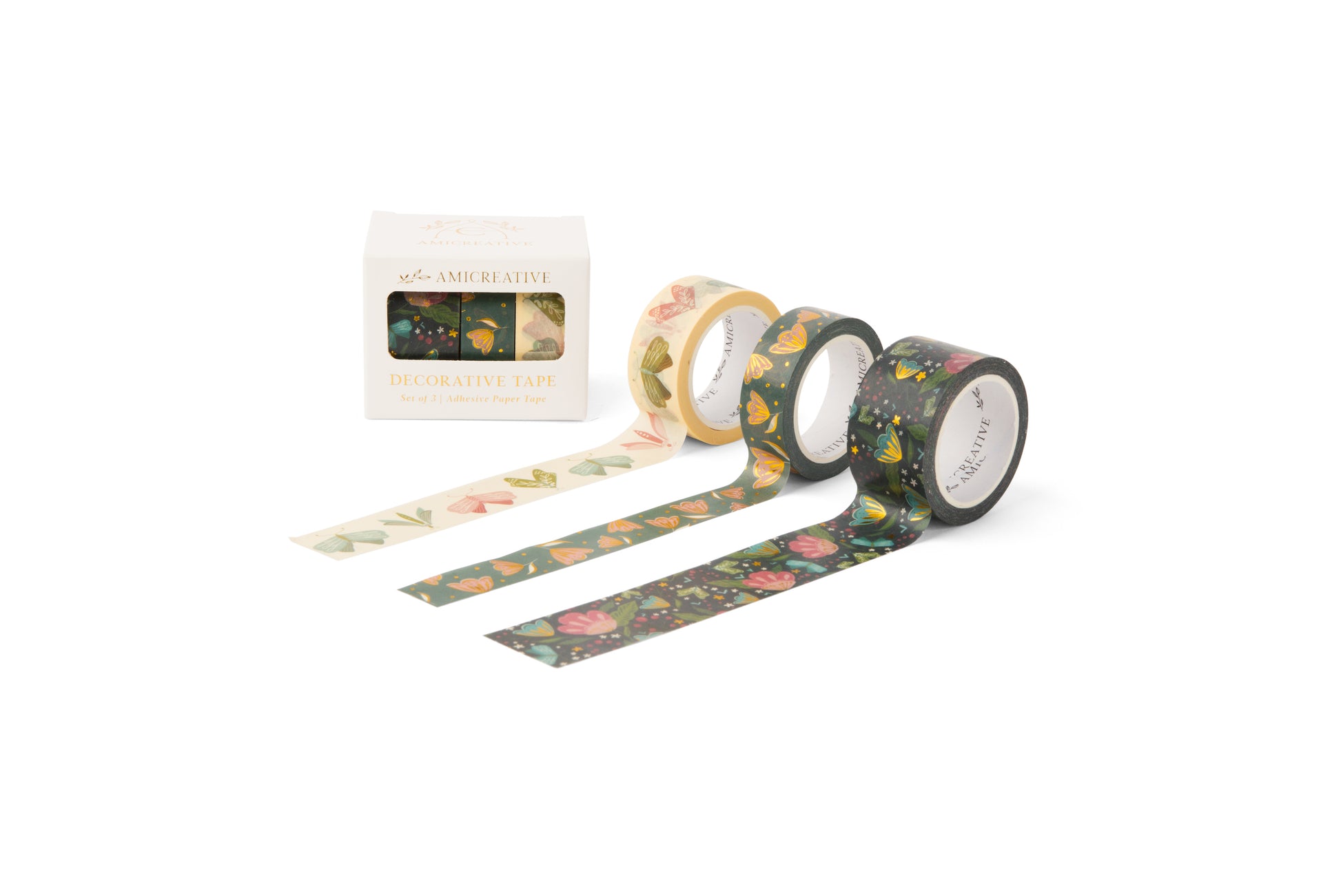 The "May Flowers Washi Tape Set Box" blooms with vibrant spring colors and intricate designs featuring flowers, butterflies, and moths, all embellished with gold foil. This captivating collection is a burst of creativity waiting to enhance any personal diary, gift, or art project. It's beautifully packaged, making it an excellent addition for retailers aiming to offer unique and environmentally friendly options in their stationery lineup.