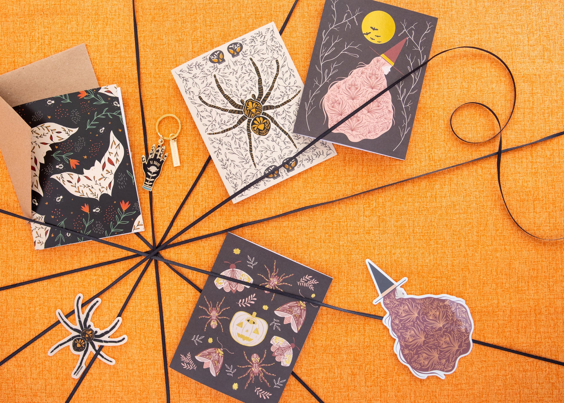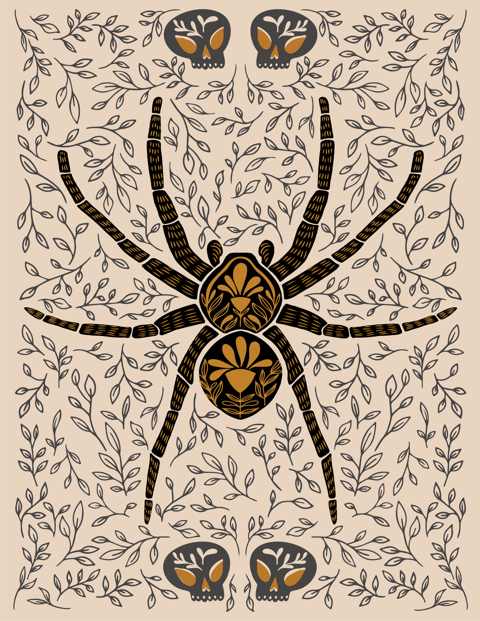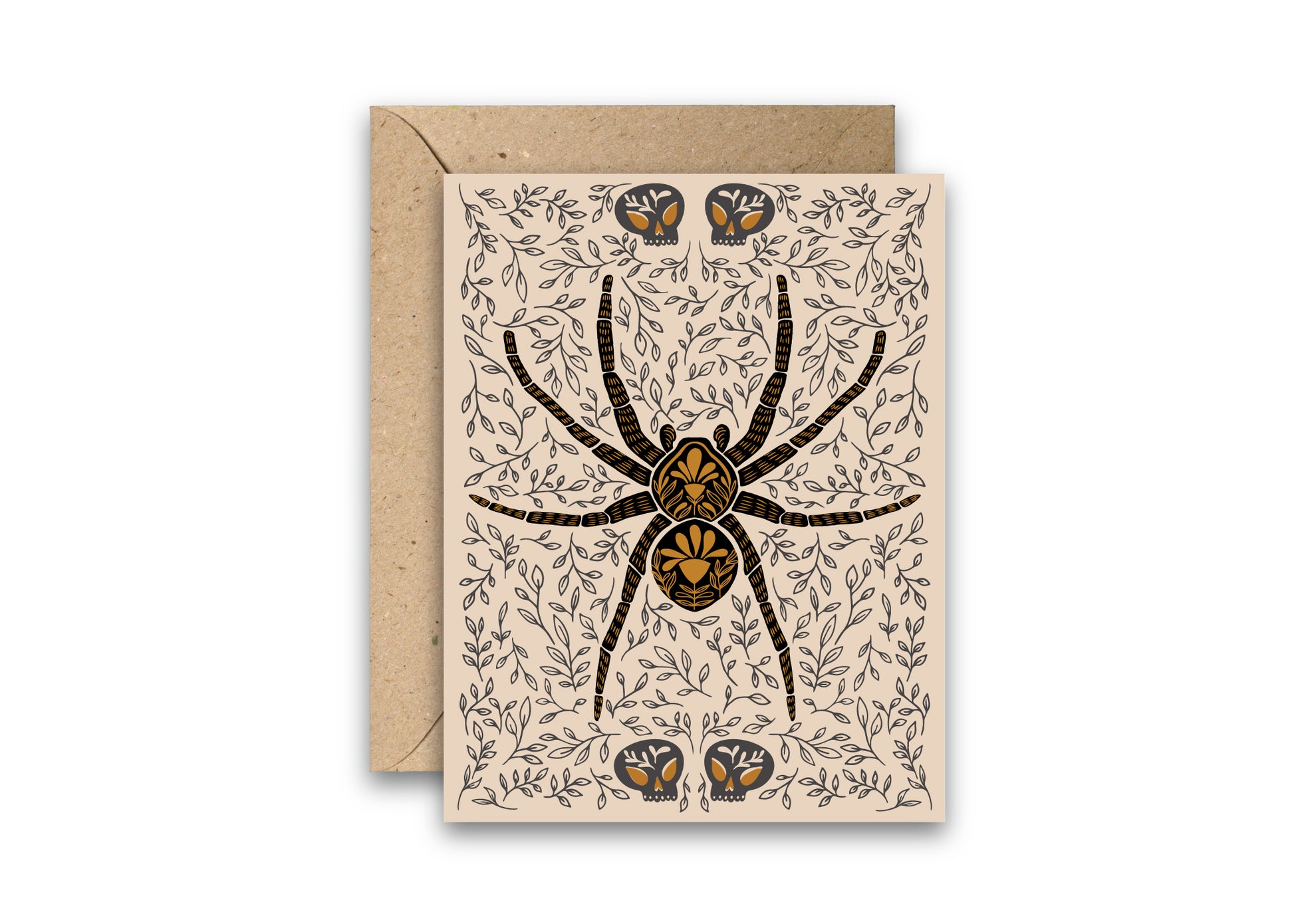 Step into the shadows with the Spider Dark Omens Greeting Card. Featuring a hand-drawn black spider entwined with grey leaves, and skull details, this haunting design is perfect for Halloween or year-round greetings with a gothic twist. Pair it with other mystical designs from the Dark Omens collection for a striking set.